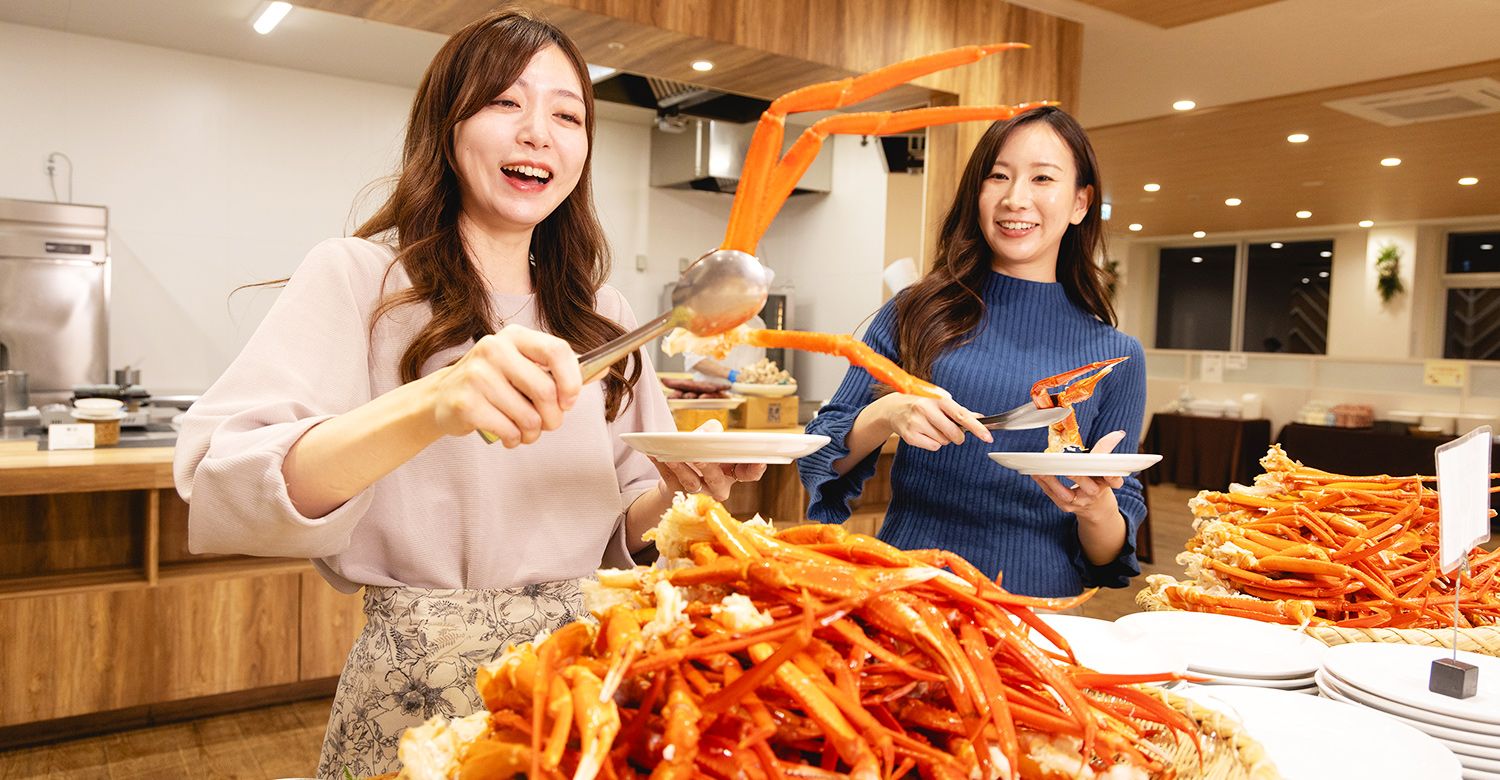 夕・朝食は、紅ズワイガニやいくら(ますこ)をはじめとする海鮮や地元産の食材を中心とした